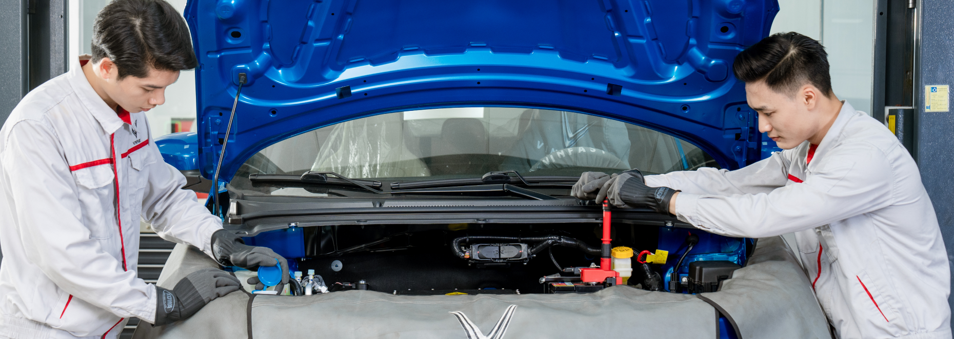 Đội ngũ VinFast được đào tạo chuẩn hóa về kỹ thuật trực tiếp tại nhà máy sản xuất xe ô tô VinFast. Đạt tiêu chuẩn về năng lực chẩn đoán, sửa chữa và bảo dưỡng.